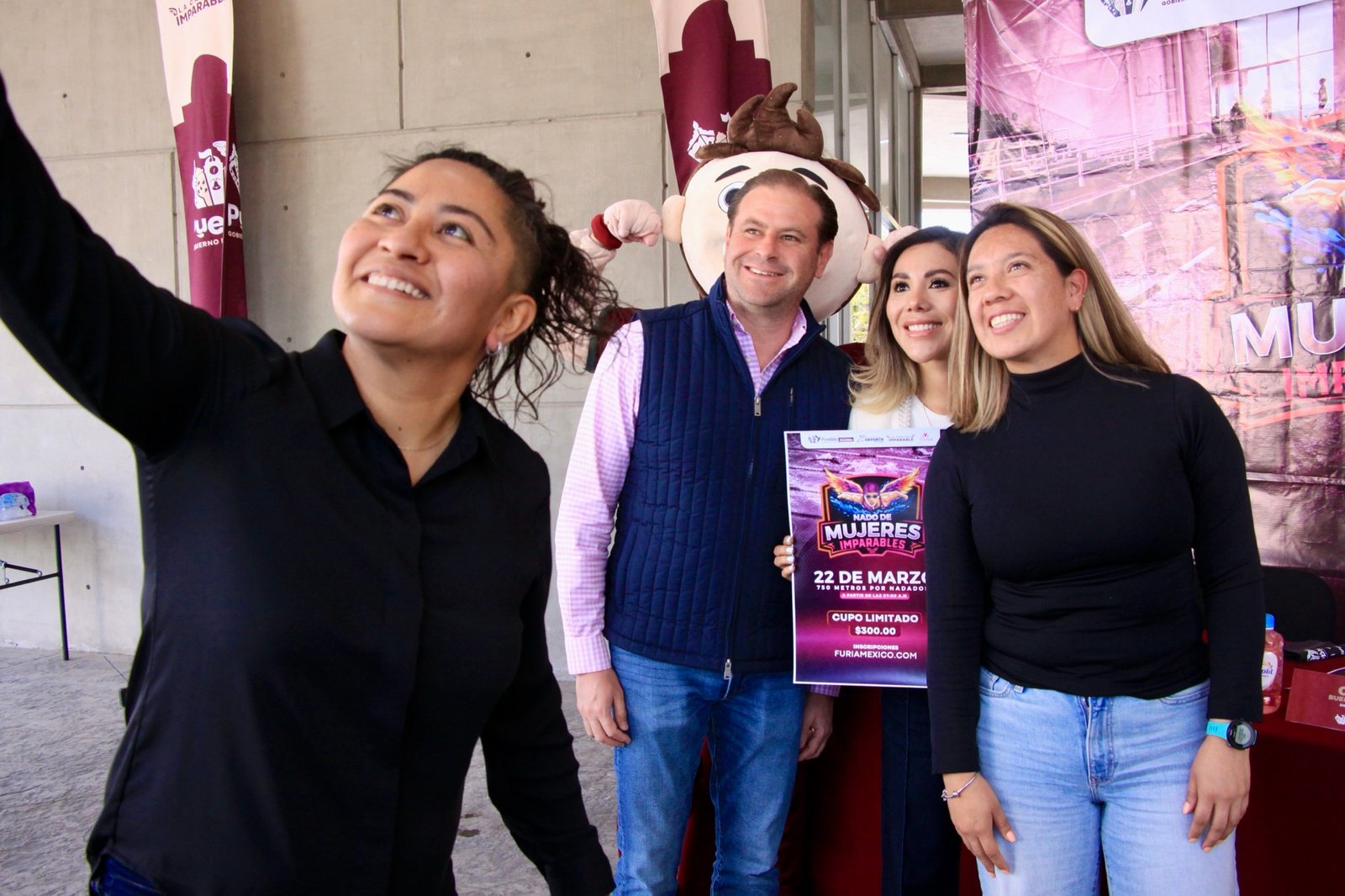 Puebla, Pue., 04 de febrero de 2026.— En el marco de la conmemoración del Día Internacional de la Mujer, el Gobierno de la Ciudad de Puebla, encabezado por el presidente municipal Pepe Chedraui, presentó el evento deportivo “Nado de Mujeres Imparables”, una iniciativa impulsada de manera conjunta por el Instituto Municipal del Deporte de Puebla (IMDP), la Secretaría de las Mujeres y Furia México.
