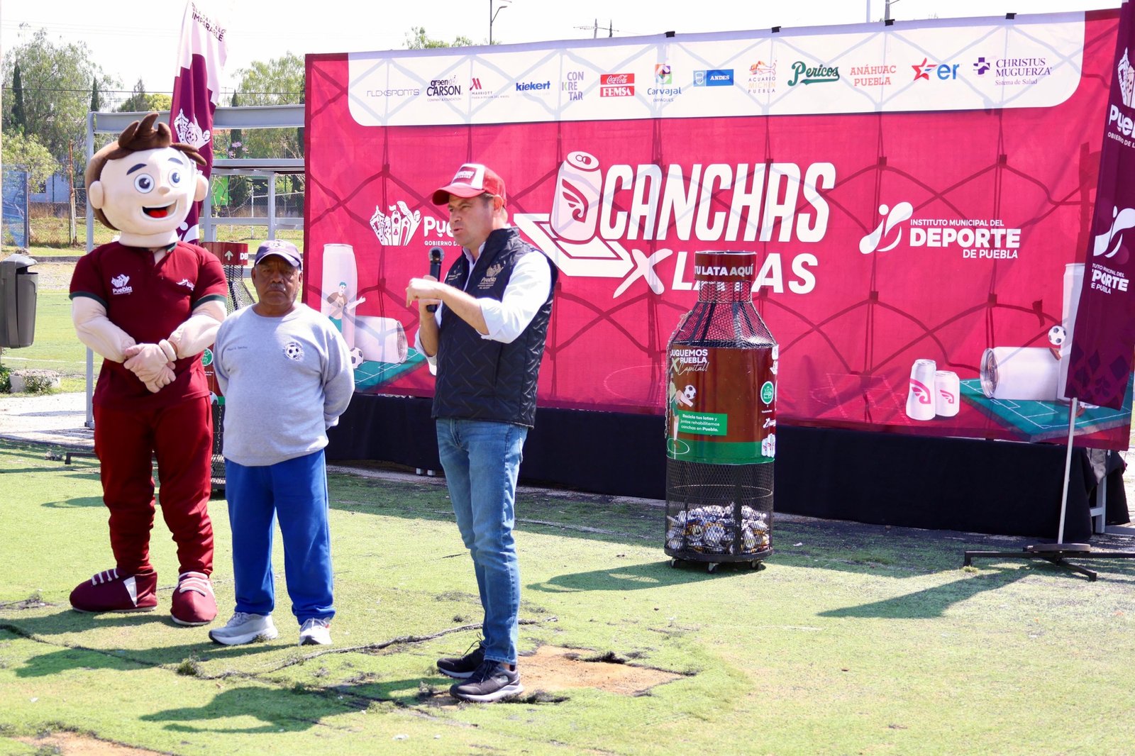 Puebla, Pue., 15 de abril de 2026.– El impulso al deporte social en la capital poblana continúa tomando fuerza. El Gobierno de la Ciudad, encabezado por Pepe Chedraui, mantiene activa la estrategia “Canchas por Latas”, un programa que vincula el reciclaje con la rehabilitación de espacios deportivos.